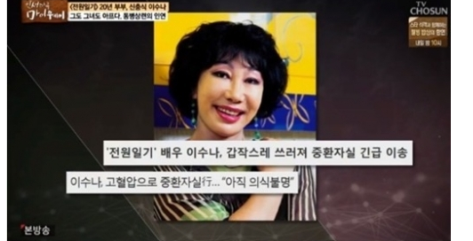 배우 신충식이 의식 불명 상태인 이수나씨를 언급하여 화재입니다
